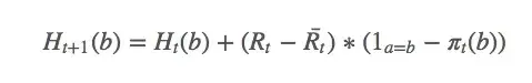 次拉下拉杆时某个特定回报的权重。因为老虎机问题只需考虑动作