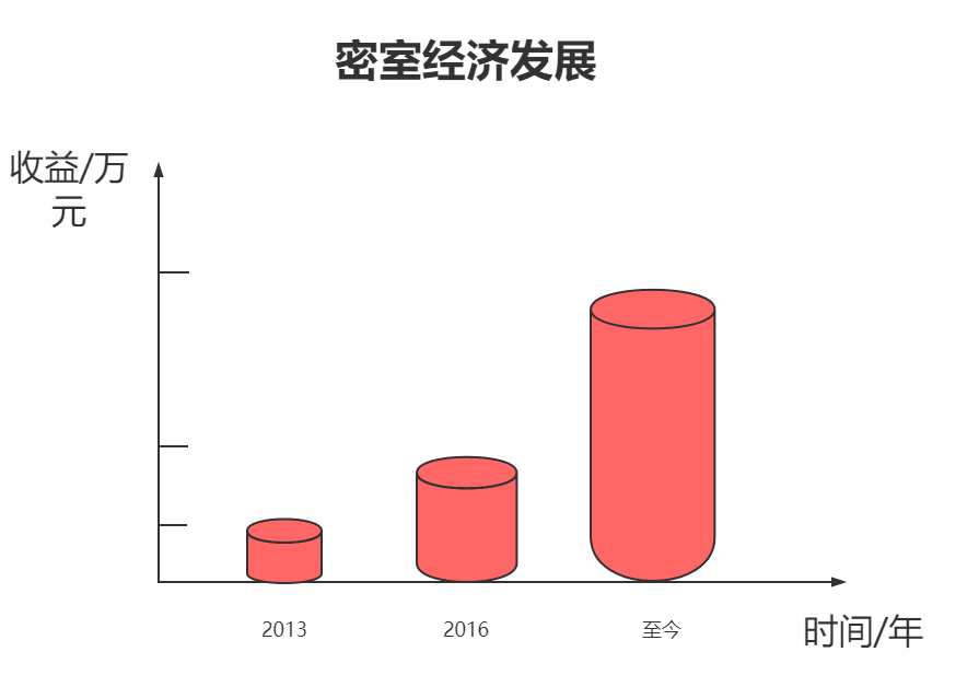 ⑤ 密室的经济效益一年比一年高,巨大的利润面前加快了资本家的和密室爱好者的涌入,这使密室行业更加蓬勃发展。